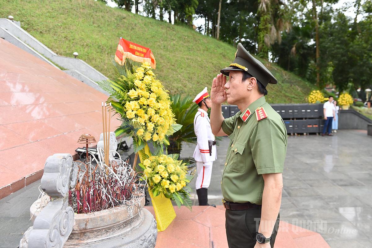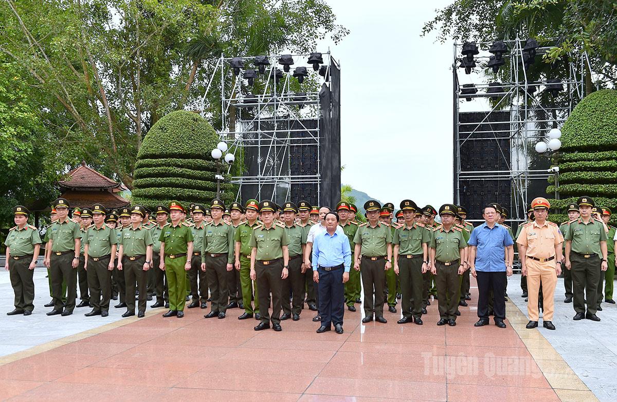 Đại tướng, Bộ trưởng Bộ Công an Lương Tam Quang và các đồng chí lãnh tỉnh dâng hương Chủ tịch Hồ Chí Minh tại Khu di tích Nha Công an Tuyên Quang.