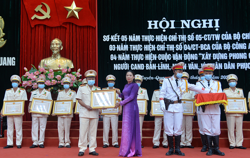 Thừa uỷ quyền của Bộ trưởng Bộ Công an, đồng chí Phó Bí thư Thường trực Tỉnh ủy Lê Thị Kim Dung trao danh hiệu “Chiến sĩ thi đua toàn lực lượng CAND” cho 2 cá nhân.