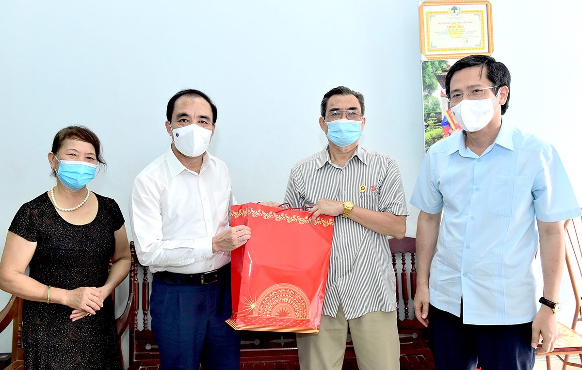 Đồng chí Bí thư Tỉnh ủy tặng quà thương binh Mai Thế Việt, tổ 1, phường Minh Xuân.