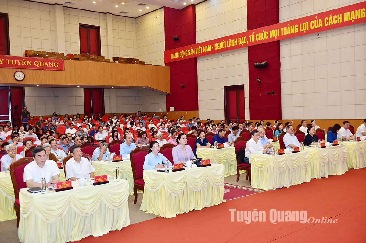 Dự hội nghị tại điểm cầu tỉnh Tuyên Quang có các đồng chí: Hà Thị Nga, Uỷ viên BCH Trung ương Đảng, Bí thư Tỉnh ủy, Trưởng Đoàn đại biểu Quốc tỉnh Tuyên Quang; Lê Thị Kim Dung, Phó Bí thư Thường trực Tỉnh ủy, Chủ tịch HĐND tỉnh; Nguyễn Văn Sơn, Phó Bí thư Tỉnh ủy, Chủ tịch UBND tỉnh; các đồng chí nguyên Thường trực Tỉnh ủy; nguyên Uỷ viên Ban Thường vụ Tỉnh ủy; các đồng chí Uỷ viên Ban Thường vụ Tỉnh ủy, Uỷ viên BCH Đảng bộ tỉnh; lãnh đạo HĐND, UBND, Uỷ ban MTTQ tỉnh; lãnh đạo các sở, ban, ngành của tỉnh.