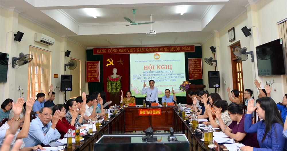 Chiều 16-4, Ban Thường trực Ủy ban MTTQ tỉnh tổ chức Hội nghị hiệp thương lần thứ ba để lựa chọn, lập danh sách những người đủ tiêu chuẩn ứng cử đại biểu HĐND tỉnh khóa XIX, nhiệm kỳ 2021-2026.