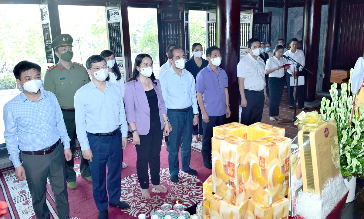 Phó Chủ tịch nước Võ Thị Ánh Xuân và lãnh đạo tỉnh dâng hương tại Đền thờ Chủ tịch Hồ Chí Minh. Ảnh: Thành Công
