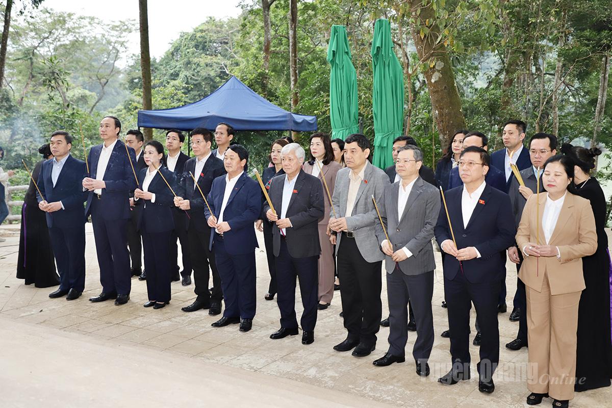 Phó Chủ tịch Thường trực Quốc hội Đỗ Văn Chiến cùng các đồng chí lãnh đạo tỉnh thăm, dâng hương tại Đình Tân Trào. |