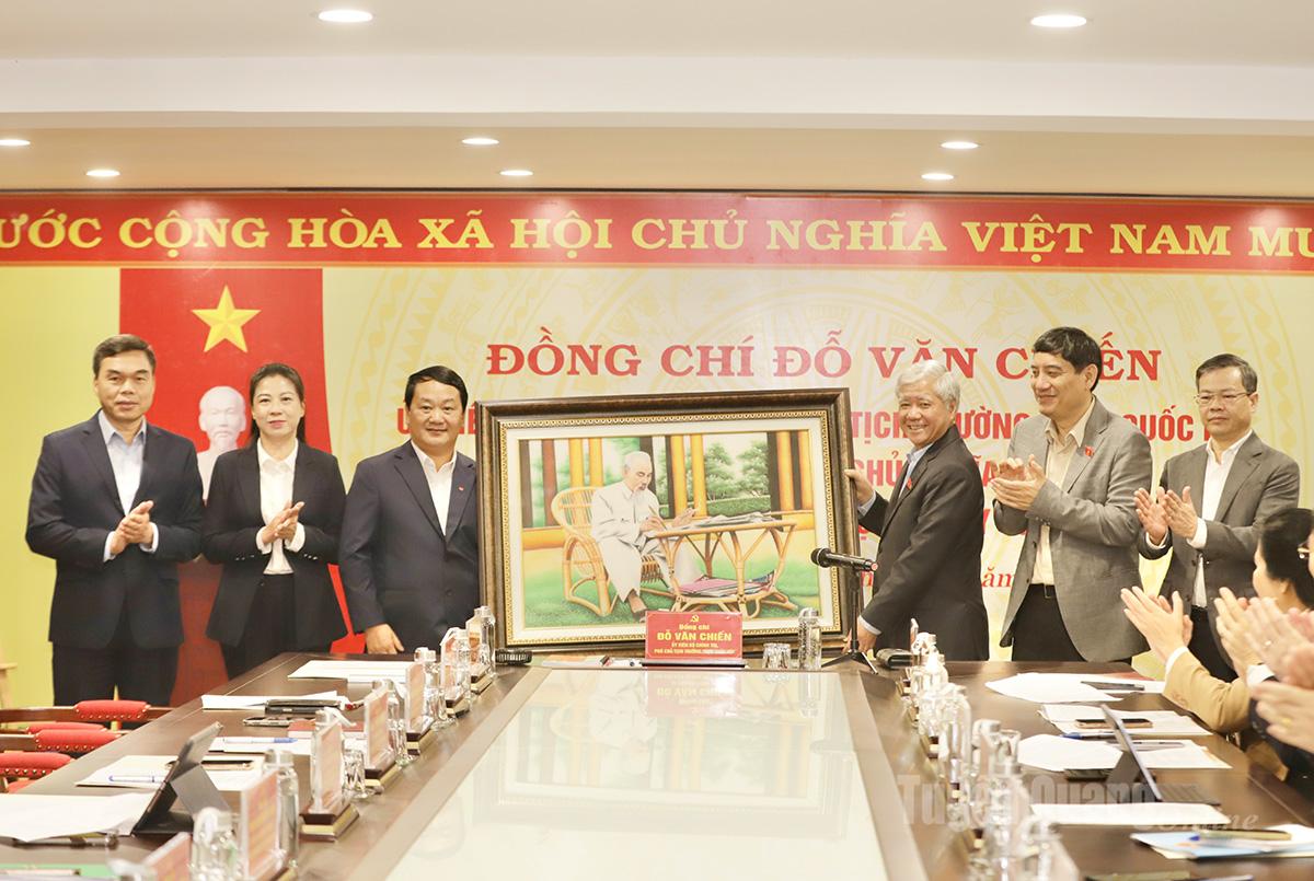 | Phó Chủ tịch Thường trực Quốc hội tặng bức tranh Chủ tịch Hồ Chí Minh cho các đồng chí lãnh đạo tỉnh. |
