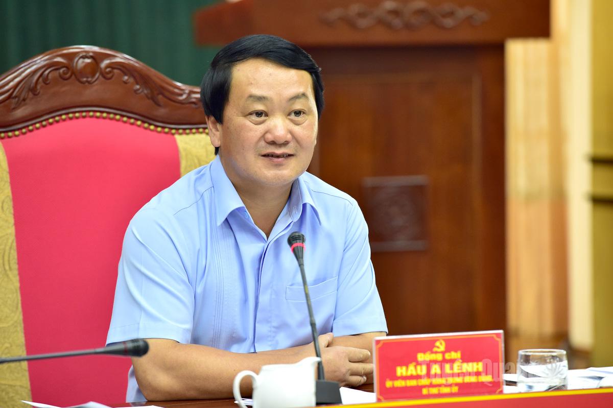 | Đồng chí Bí thư Tỉnh ủy Hầu A Lềnh chủ trì cuộc họp. |
