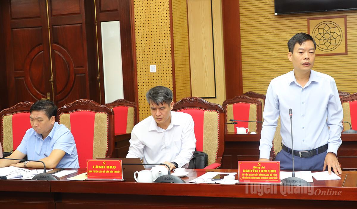 Phó Trưởng ban Thường trực Ban Tuyên giáo và Dân vận Tỉnh ủy Nguyễn Lam Sơn thảo luận tại buổi làm việc.