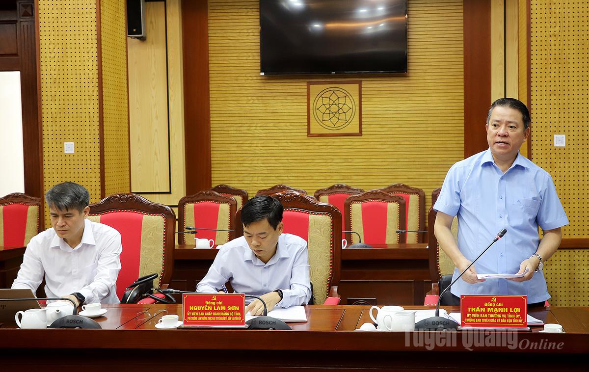 Trưởng ban Tuyên giáo và Dân vận Tỉnh ủy Trần Mạnh Lợi báo cáo công tác tuyên giáo và dân vận tại buổi làm việc.