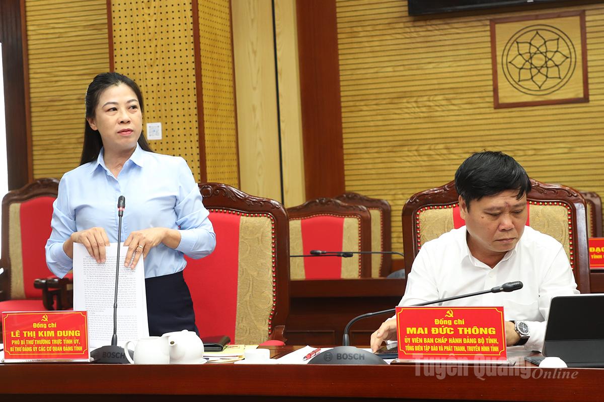 Phó Bí thư Thường trực Tỉnh ủy Lê Thị Kim Dung phát biểu thảo luận tại buổi làm việc.