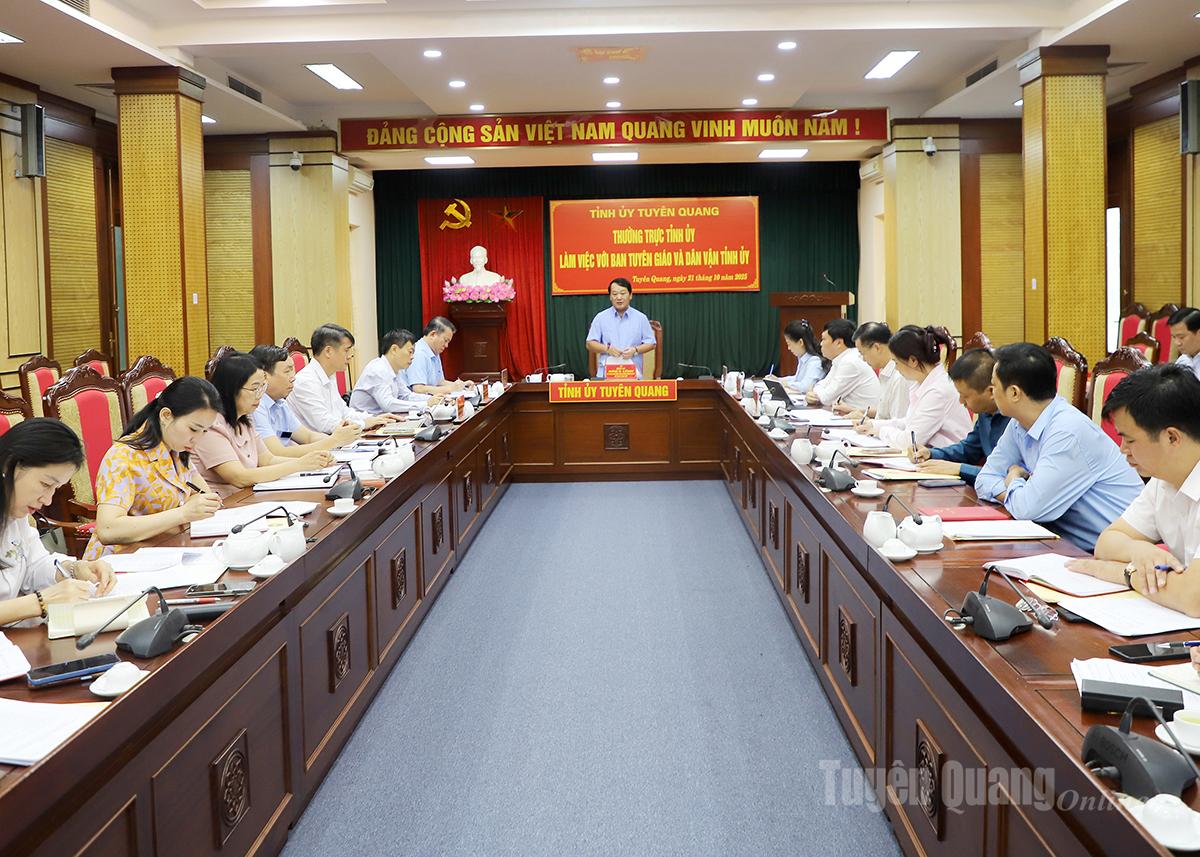 Thường trực Tỉnh ủy làm việc với Ban Tuyên giáo và Dân vận Tỉnh ủy