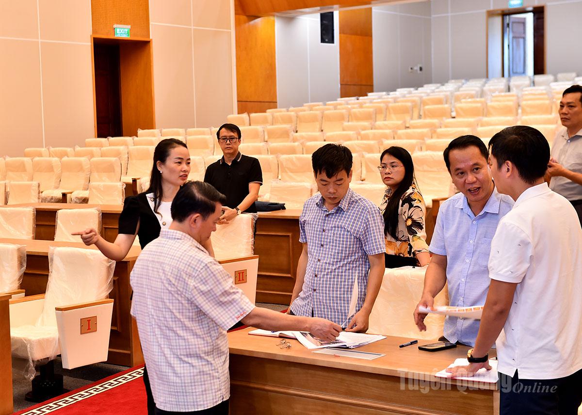 Đoàn đã kiểm tra, cho ý kiến trực tiếp về việc sắp xếp, bố trí hệ thống chỗ ngồi đại biểu khu vực hội trường chính, các hạng mục trang trí, pa-nô, áp-phích, khẩu hiệu, hệ thống âm thanh, ánh sáng và công tác hậu cần phục vụ Đại hội.