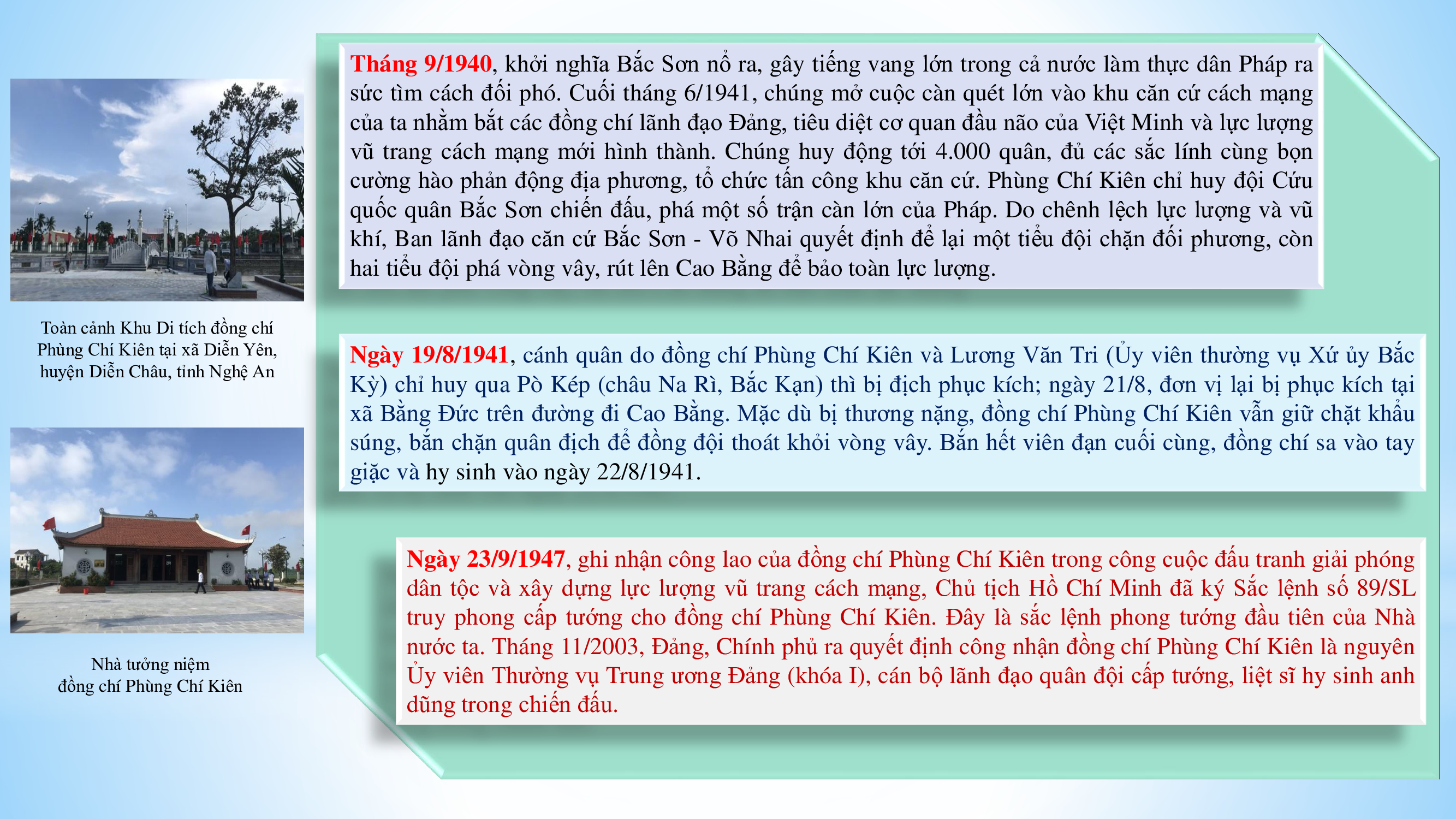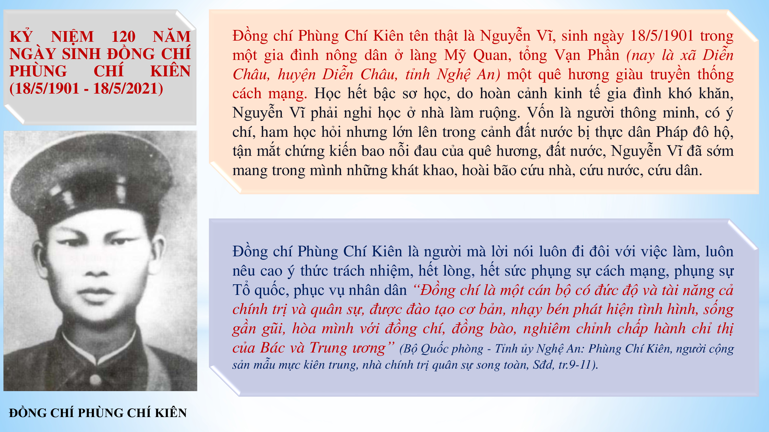 1. Bộ Quốc phòng - Tỉnh ủy Nghệ An: Phùng Chí Kiên, người cộng sản mẫu mực kiên trung, nhà chính trị quân sự song toàn, Sđd, tr.9-11..