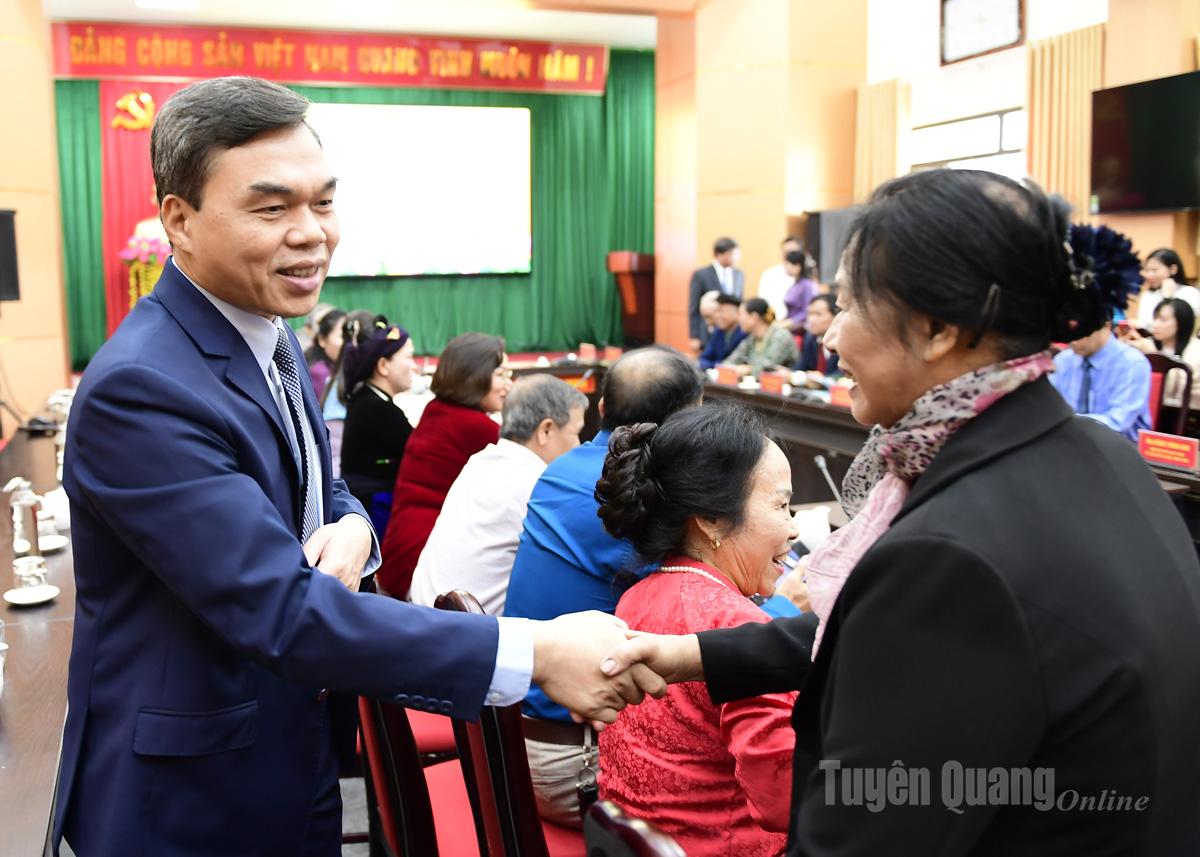 Đồng chí Phó Bí thư Tỉnh ủy, Chủ tịch Ủy ban MTTQ tỉnh Ma Thế Hồng thăm hỏi các đại biểu nguyên lãnh đạo UBMTTQ Việt Nam tỉnh Tuyên Quang qua các thời kỳ.