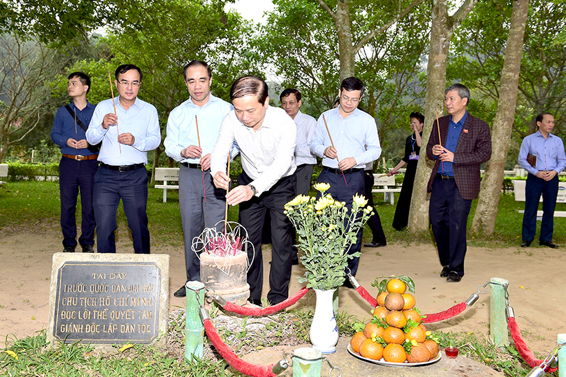 Trước đó, các đại biểu đã dâng hương tại lán Nà Nưa, đình Tân Trào, Khu tưởng niệm các vị tiền bối cách mạng.