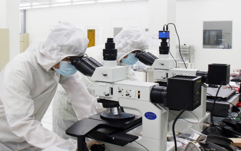 Các chuyên gia và nhà khoa học nghiên cứu công nghệ tại phòng sạch Trung tâm Nghiên cứu triển khai Khu Công nghệ cao Thành phố Hồ Chí Minh_Ảnh: TTXVN