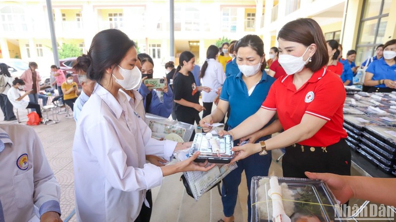 Tại huyện Ứng Hòa, năm nay, Đoàn Thanh niên, Hội Chữ thập đỏ huyện Ứng Hòa cũng trao đến thí sinh ở hai điểm thi trường Trung học phổ thông Lưu Hoàng và Ứng Hòa B những suất ăn nghĩa tình.