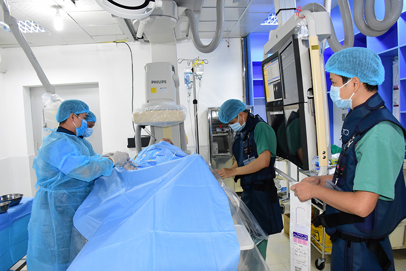 Một ca can thiệp động mạch vành tại Bệnh viện Đa khoa tỉnh. Ảnh: Minh Hoa