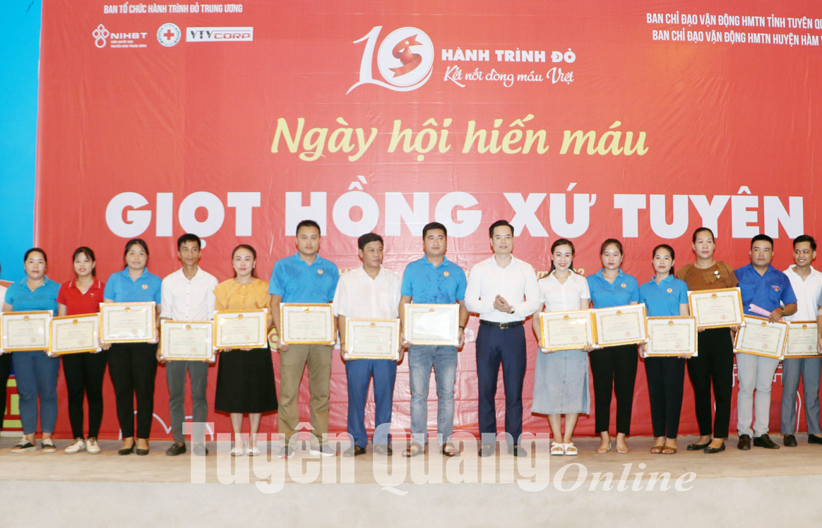 Nhân dịp này, Chủ tịch UBND huyện Hàm Yên đã tặng Giấy khen cho 45 cá nhân đã có thành tích trong phong trào hiến máu tình nguyện năm 2022.