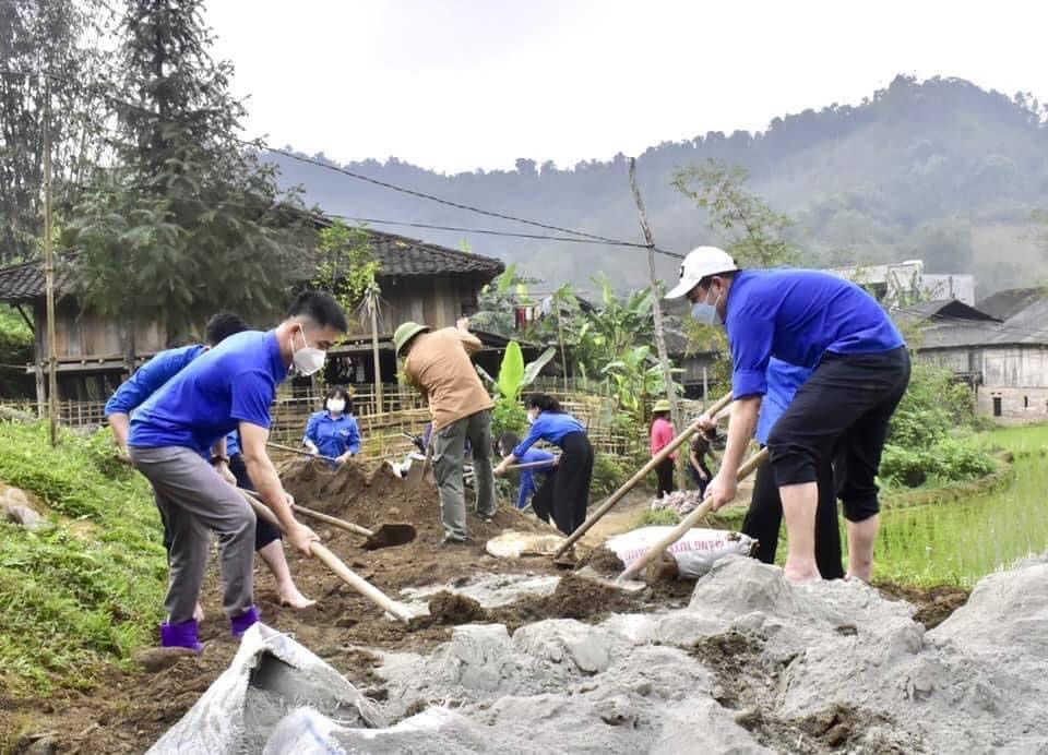 Đoàn viên, thanh niên tham gia hỗ trợ làm đường bê tông nông thôn