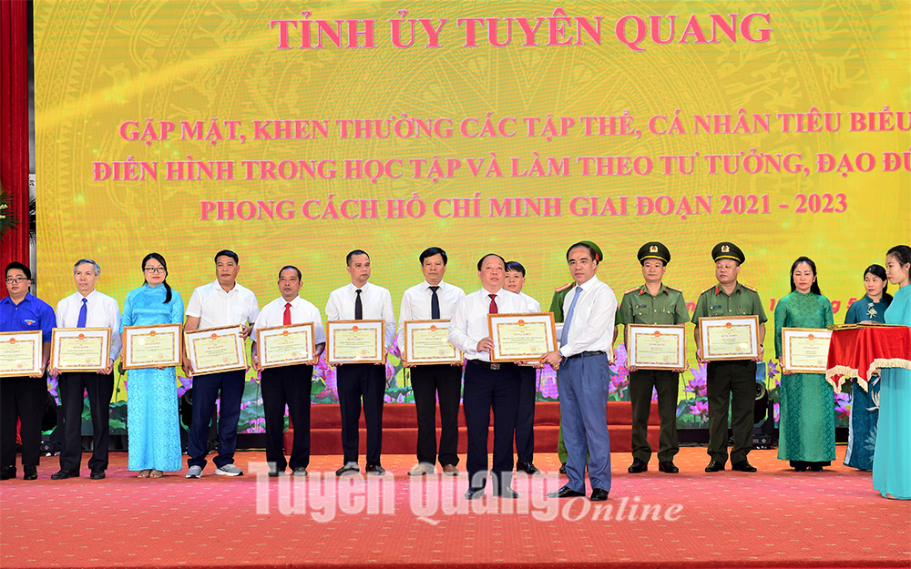 Thấm nhuần tư tưởng thi đua yêu nước của Chủ tịch Hồ Chí Minh, cụ thể hóa các văn bản của Trung ương, thời gian qua, tỉnh Tuyên Quang đã và đang triển khai thực hiện có hiệu quả các phong trào thi đua yêu nước với chủ đề "Đảng bộ, chính quyền và Nhân dân các dân tộc tỉnh Tuyên Quang quyết tâm thi đua thực hiện thắng lợi nhiệm vụ phát triển kinh tế - xã hội, phấn đấu đưa Tuyên Quang phát triển khá, toàn diện, bền vững trong khu vực miền núi phía Bắc"; "Tuyên Quang chung sức xây dựng nông thôn mới"; "Cả nước chung tay vì người nghèo - Không để ai bị bỏ lại phía sau"; "Doanh nghiệp Việt Nam hội nhập và phát triển"; "Cán bộ công chức, viên chức tỉnh Tuyên Quang thi đua thực hiện văn hóa công sở"; "Tuyên Quang đoàn kết, chung sức, đồng lòng thi đua phòng chống và chiến thắng đại dịch Covid-19"; "Chuyển đổi số tỉnh Tuyên Quang đến năm 2025, định hướng đến năm 2030"; "Đẩy mạnh phát triển kết cấu hạ tầng đồng bộ, hiện đại thực hành tiết kiệm, chống lãng phí"…Cùng với đó, tỉnh tiếp tục chỉ đạo các cấp ủy đảng tiếp tục quán triệt sâu sắc tư tưởng của Chủ tịch Hồ Chí Minh về thi đua ái quốc, các chủ trương của Đảng, chính sách, pháp luật của Nhà nước về thi đua, khen thưởng. Đồng thời, đẩy mạnh các phong trào thi đua yêu nước gắn với việc học tập và làm theo tư tưởng, đạo đức, phong cách Hồ Chí Minh theo tinh thần Kết luận số 01-KL/TW ngày 18/5/2021 của Bộ Chính trị. Công tác phát hiện, bồi dưỡng, biểu dương, tôn vinh và nhân rộng các tập thể, cá nhân điển hình tiên tiến, các gương “người tốt, việc tốt” trong các phong trào thi đua yêu nước được các cấp, các ngành, cơ quan, đơn vị, trường học trên địa bàn tỉnh thực sự được quan tâm, chú trọng. Các tiêu chí thực hiện đã được cụ thể hóa thông qua các phong trào “Toàn dân đoàn kết xây dựng đời sống văn hóa”, “Toàn dân bảo vệ an ninh Tổ quốc”, “Xây dựng người phụ nữ Việt Nam thời đại mới”, “Giỏi việc nước, đảm việc nhà”, “Dạy tốt học tốt”; “Nông dân thi đua sản xuất kinh doanh giỏi, đoàn kết giúp đỡ nhau làm giàu và giảm nghèo”…Các phong trào đã thực sự lan tỏa trong cộng đồng dân cư, trong cán bộ, đảng viên, đoàn viên, chiến sĩ lực lượng vũ trang và Nhân dân trên địa bàn tỉnh bằng những việc làm cụ thể như tặng quà, giúp đỡ bằng tiền và hiện vật, ngày công lao động, hiến đất xây dựng nhà văn hóa thôn, làm đường giao thông nông thôn, xây dựng lớp học mầm non, giúp đỡ các hộ gia đình khó khăn vươn lên thoát nghèo…